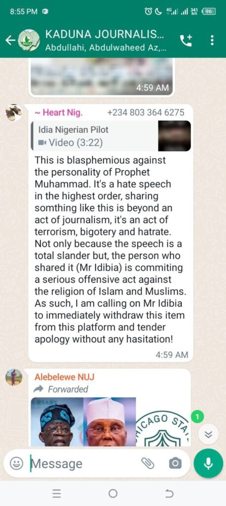 Trouble started for Mr. Gabriel Idibia following arguments among Kaduna Journalists on a shared Platform on WHATSAPP linked to the Israeli Palestinian crisis that began October 7, 2023 .The Idibia posted no original content but inserted a viral video titled: “Son of Hamas Exposed Muhammad.”