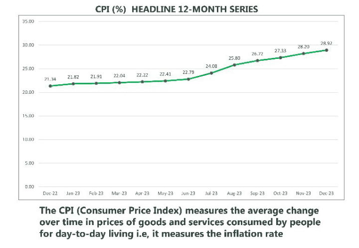Nigeria’s inflation rate in December 2023 climbed to 28.92 percent as a halt to gas subsidies stoked transport costs, pushed up the prices of commodities and the naira weakened against the U.S. dollar.