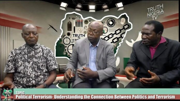 Truth To Power on TruthNigeria TV explores the deep connection between politics and terrorism. Host Ehis Agbon engages experts to analyze how political motives drive terrorism globally and locally, with a focus on Nigeria’s challenges and solutions. This episode aims to inspire understanding and promote meaningful change.