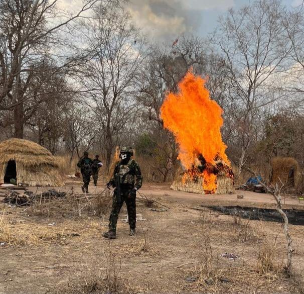 Recovered items included six rifles, nearly 600 rounds of ammunition, military uniforms, radios, and combat gear. Three motorcycles and rustled cattle were destroyed. A soldier was wounded during the operation but is in stable condition.
