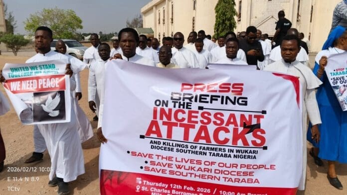 (Jalingo) 50 Catholic clergy marched through the streets of Jalingo, Thursday, February 12, 2026, to protest of what they call “systematic extermination of Christians” in Nigeria’s Taraba State.